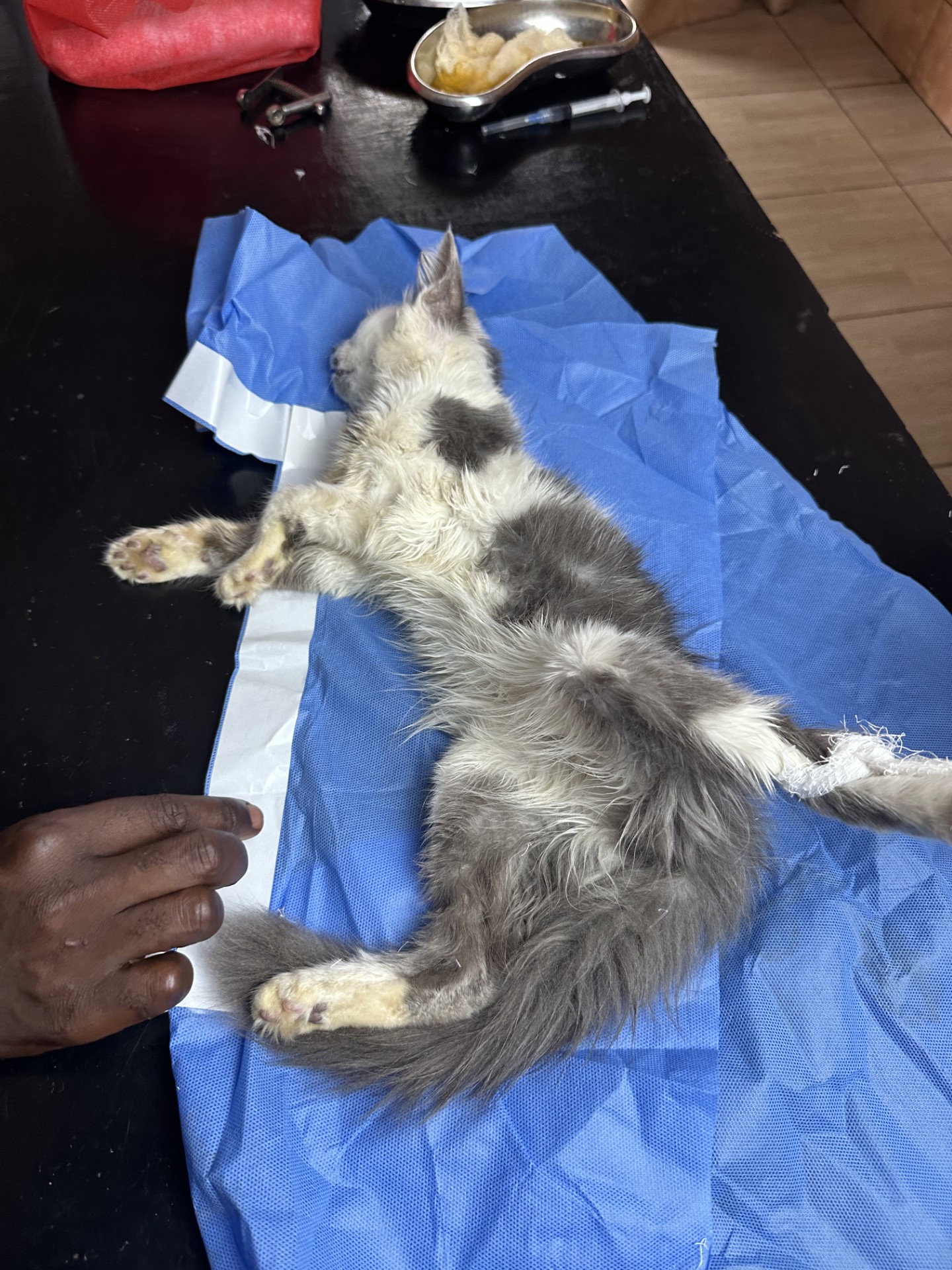 Zusätzlich kam es zu einem akuten Notfall: Einige der Katzen hatten unverdauliche Fremdstoffe aufgenommen. Besonders tragisch war der Verlust von Snowy, dem jüngsten und kleinsten Mitglied der Gruppe. Trotz aller Bemühungen kam für ihn jede Hilfe zu spät. 💔